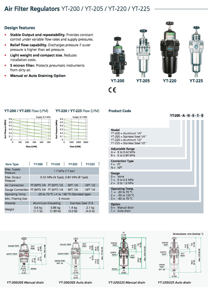 YT-200AN110-Stable Output and Repeatability, Relief Flow Capacity, Manual & Auto Draining Option